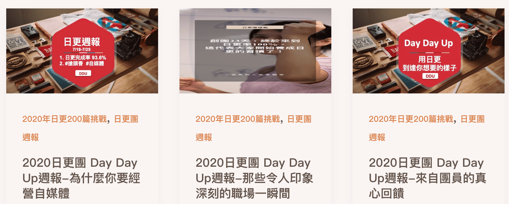 非常有趣的是,我開始寫起了 DDU 的週報,分享當週有趣的事情、我們的主題文章、日更率等等。